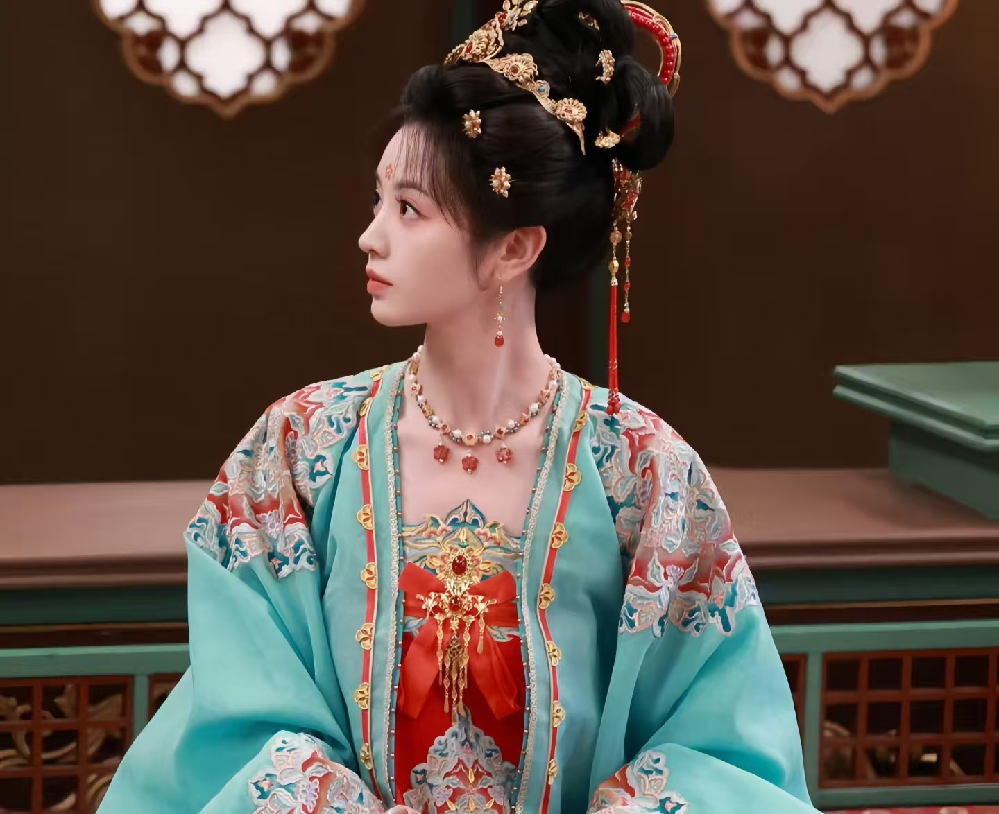 剧里的服化道也经剧宣大力展示,细节拉满。武祯的深蓝色翻领胡服绣着金线,骑马时衣摆翻飞,宛如从古画走出;梅逐雨的官服、道袍精致,腰带上的玉佩还照着老古董还原,让人觉得剧集品质靠谱。